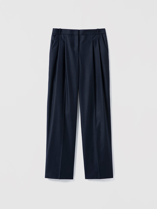 Pleated Wool Straight Pant