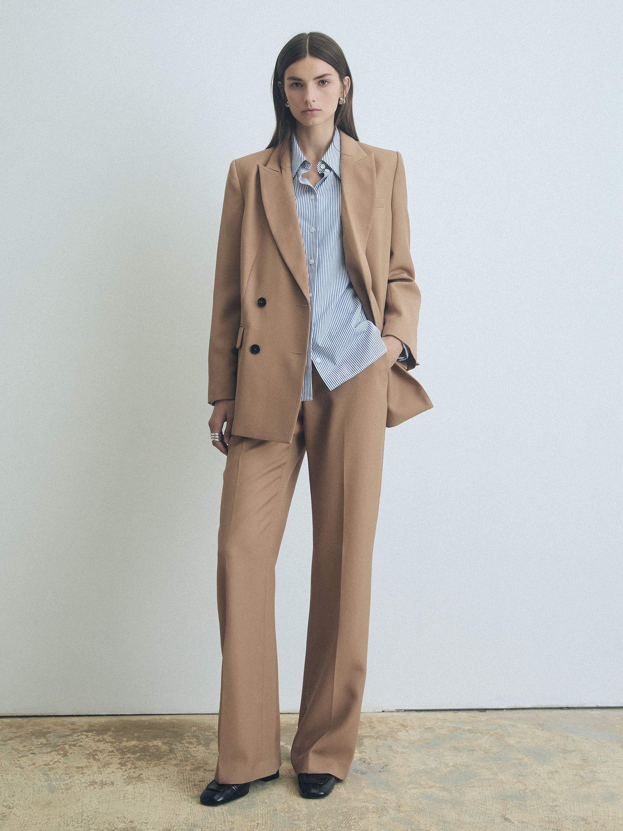 Long-sleeve striped cotton poplin shirt.