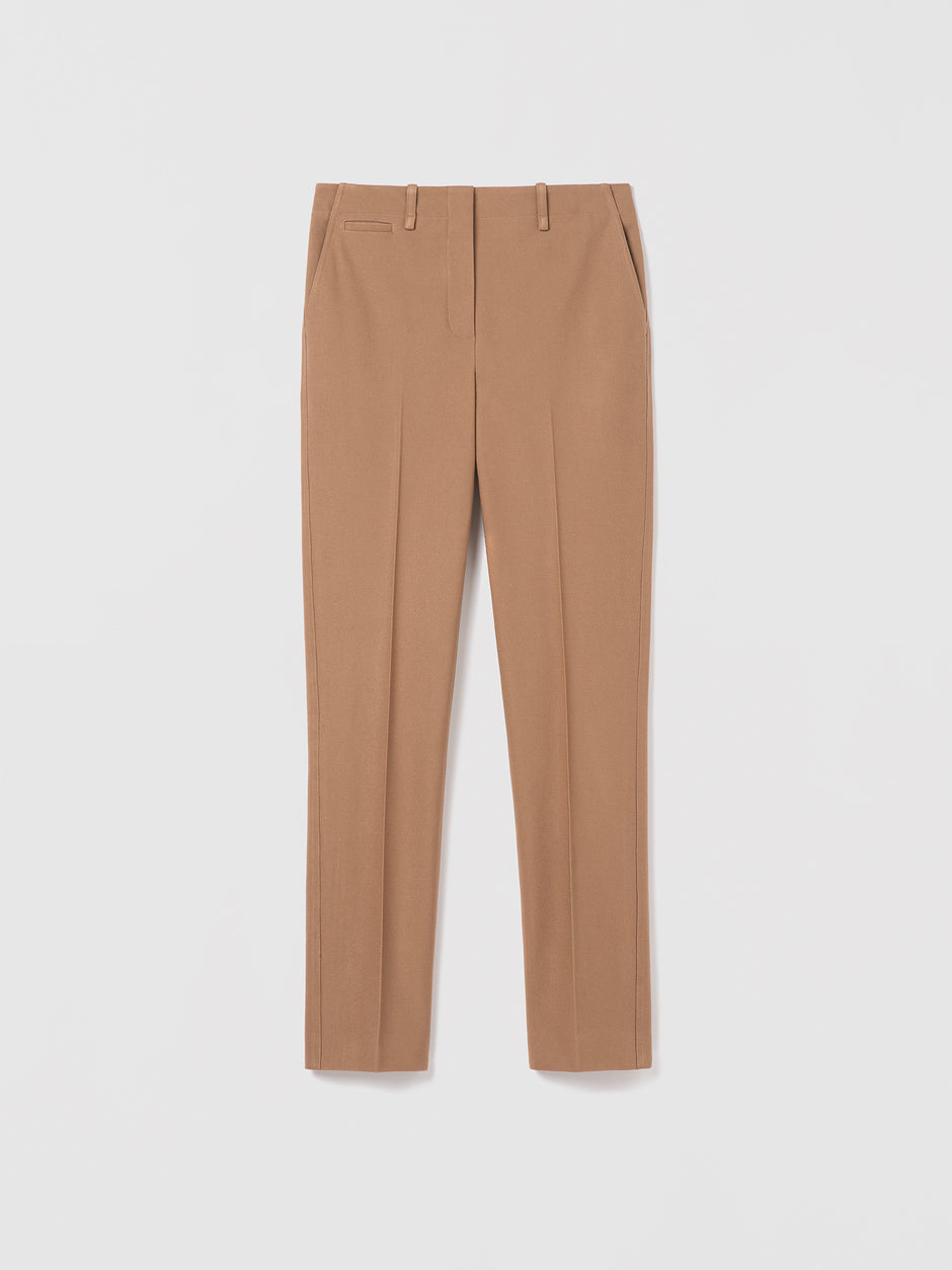 Slim ankle pant with a mid rise. Fully lined. Crafted in a viscose–cotton blend.