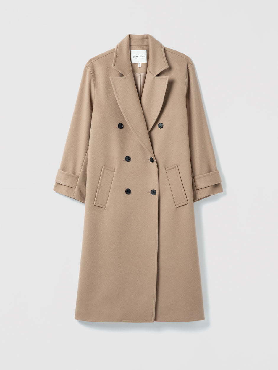 Drop Shoulder double breasted long coat in wool cashmere.
