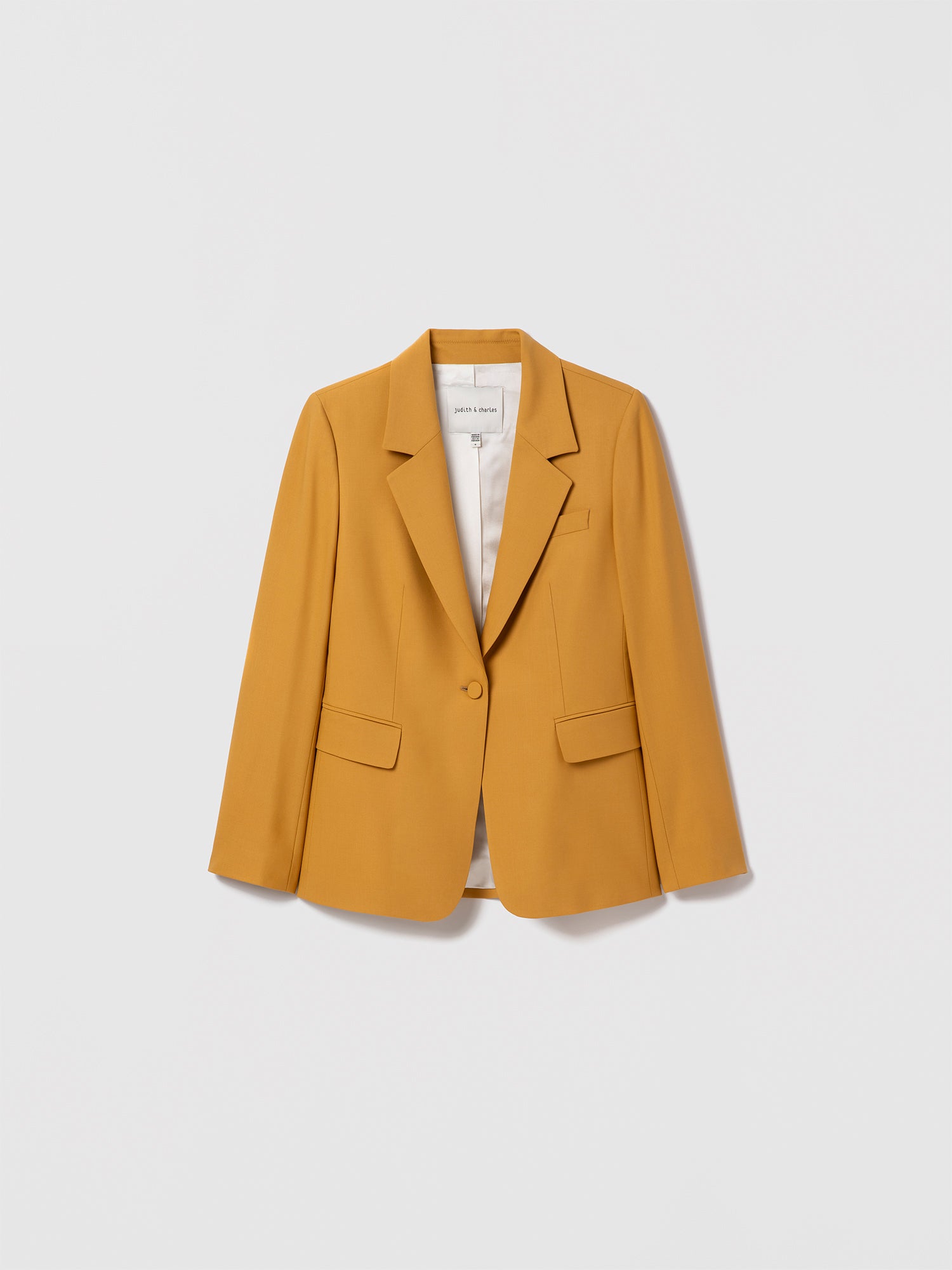 Structured virgin wool-blend jacket with a notch lapel, flap pockets, and self-covered buttons. Fully lined, with a single back vent.