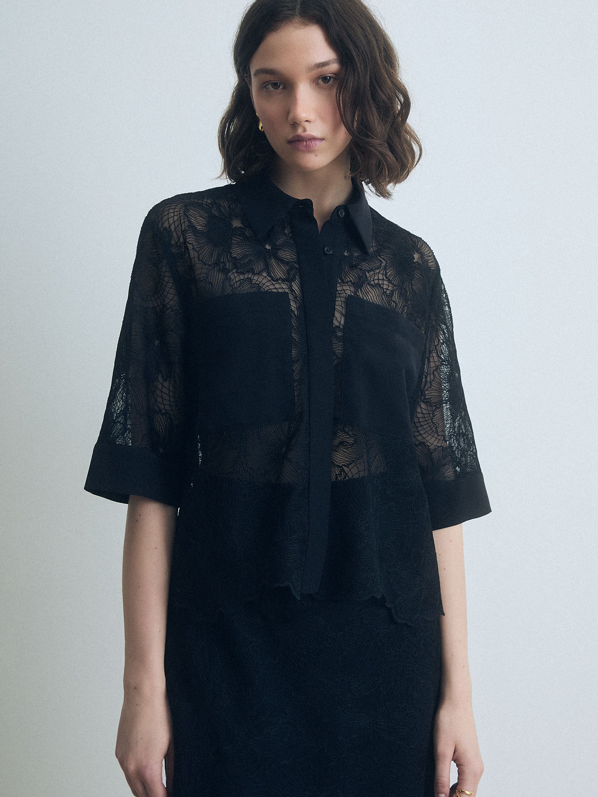Blouse Col Droit Dentelle