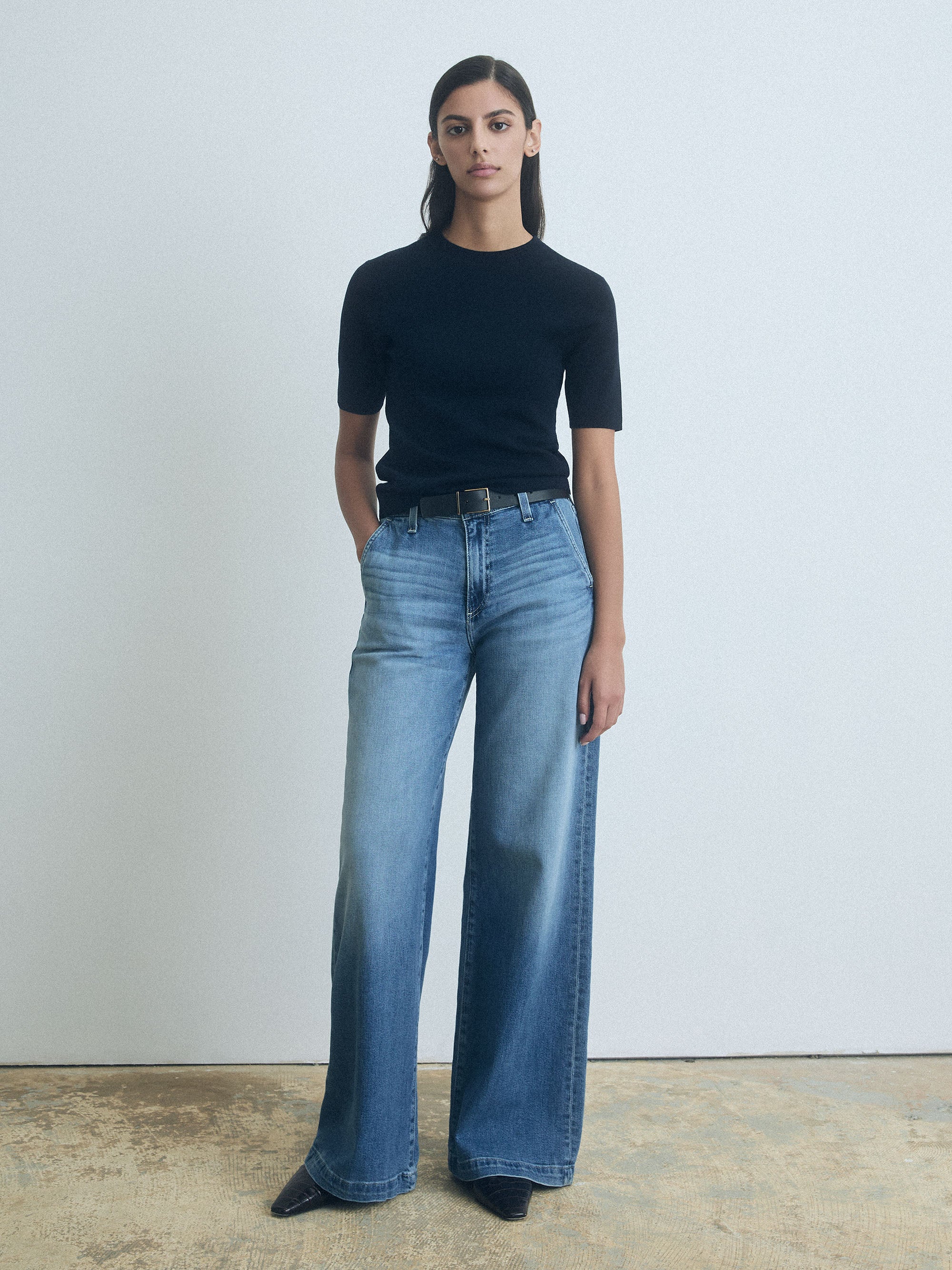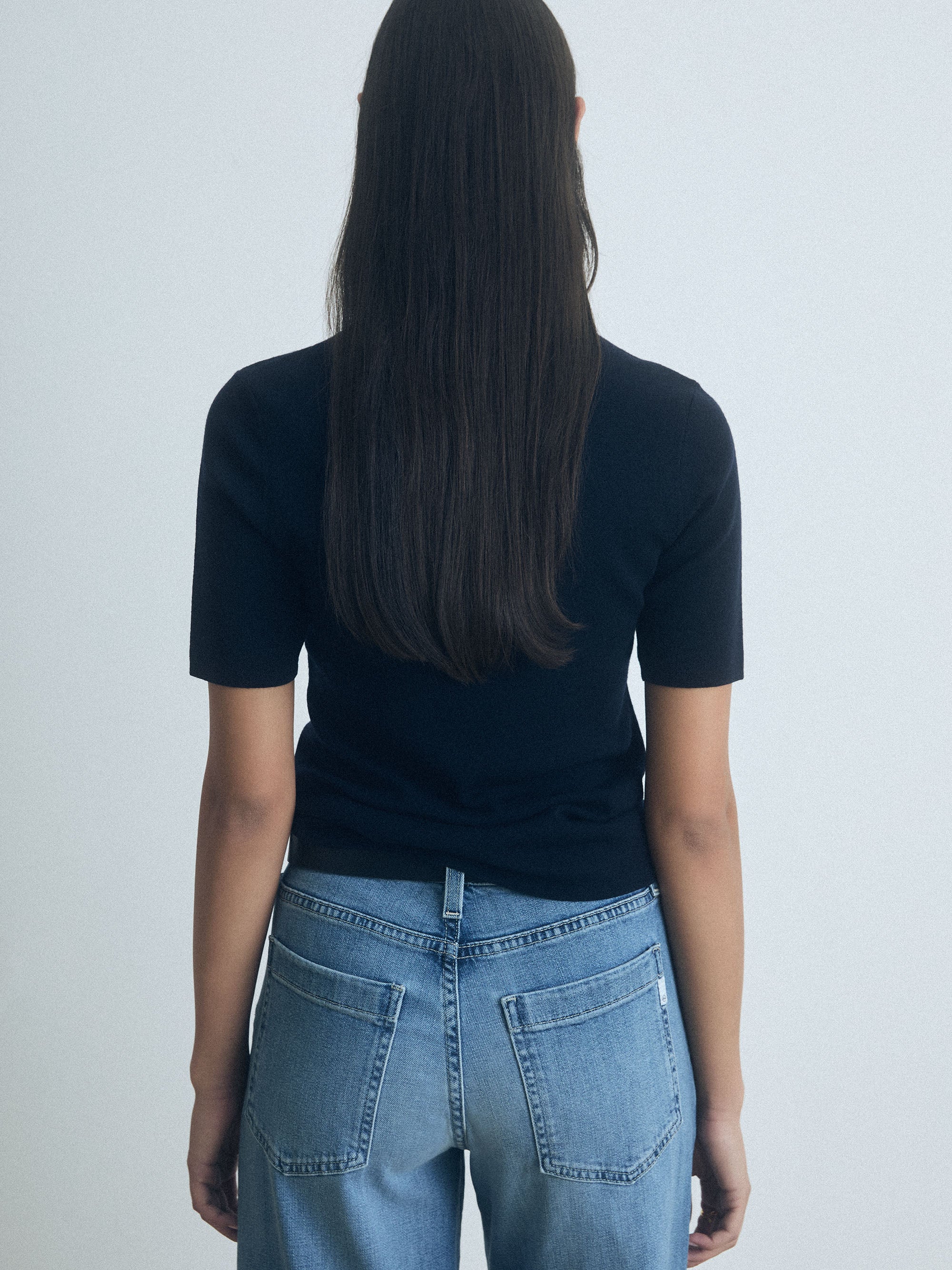 Pull à manches courtes et col rond en laine mérinos extrafine