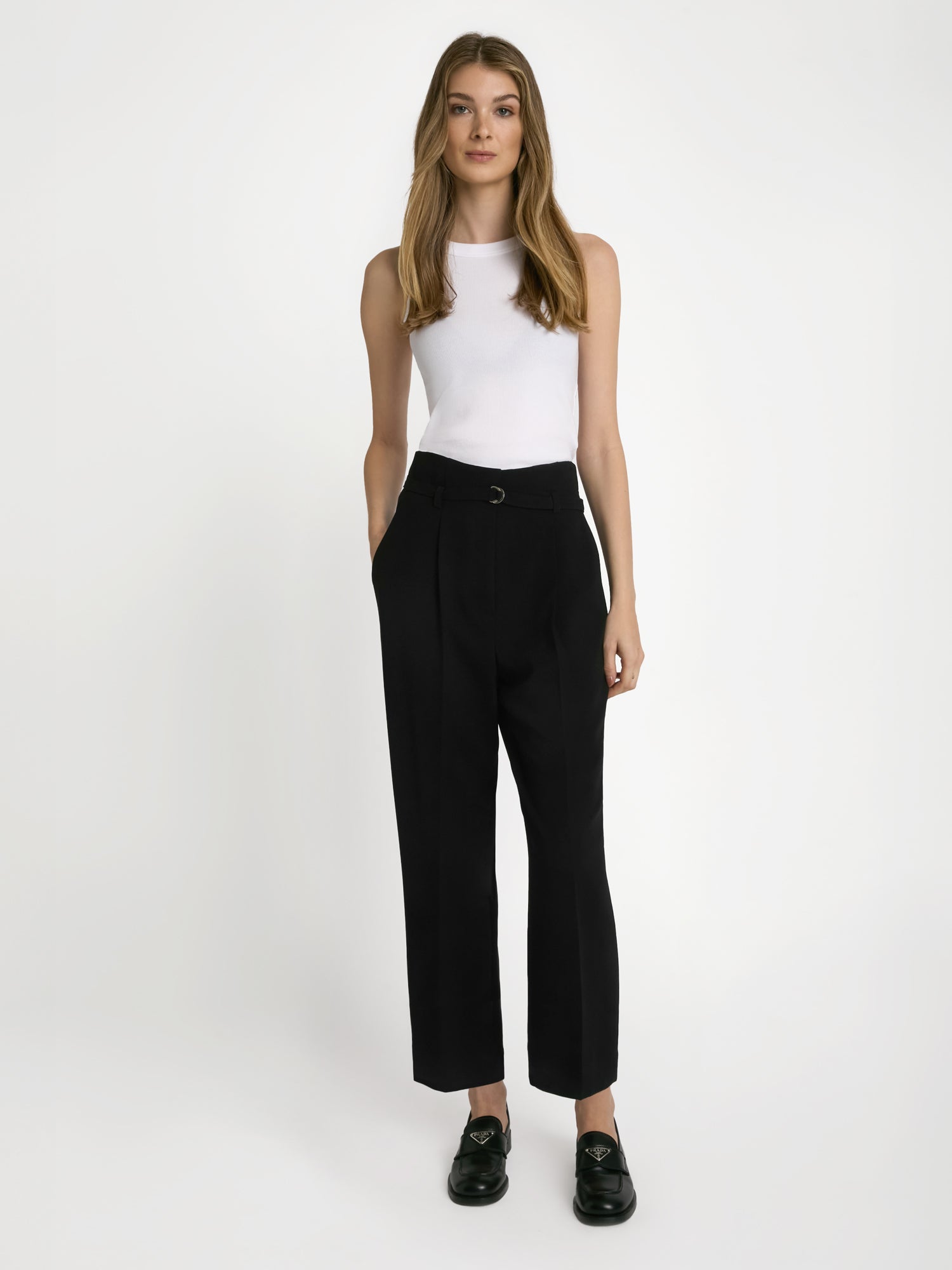 Pantalon droit plissé longueur cheville en triacétate, taille haute