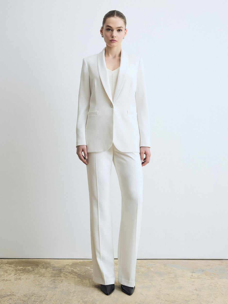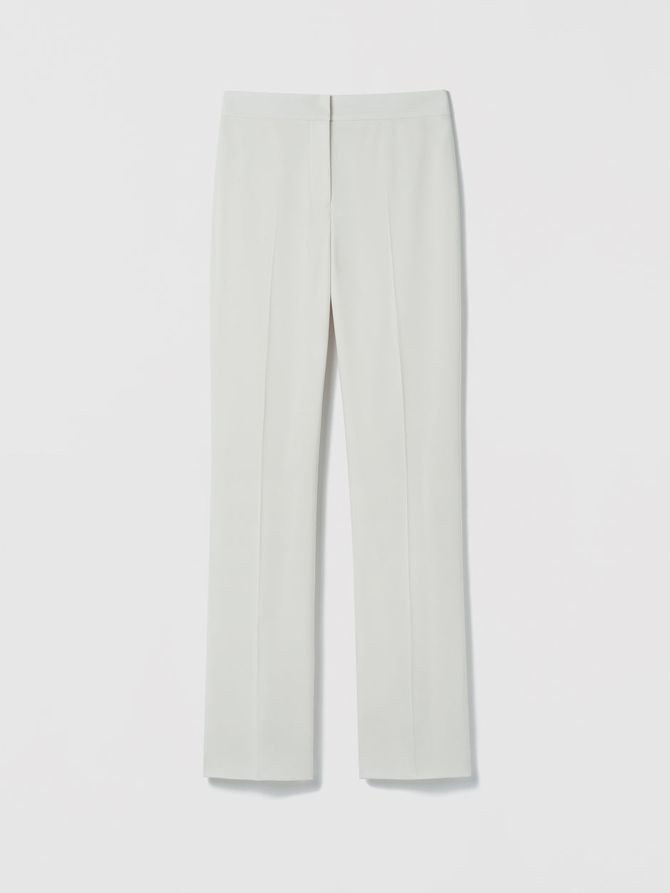 Un pantalon large pleine longueur en crêpe envers satin, doté d’une taille mi‑haute épurée et d’une ligne fluide.