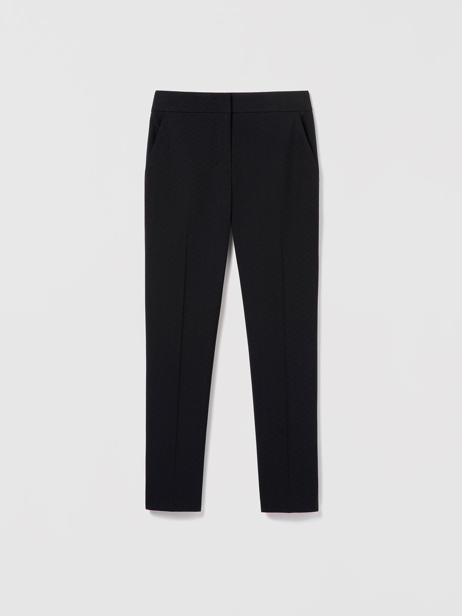 Pantalon classique techno en tissu jacquard avec poches biais et poches dos passepoilées, fermeture à crochet et zip, fabriqué au Canada avec tissu italien