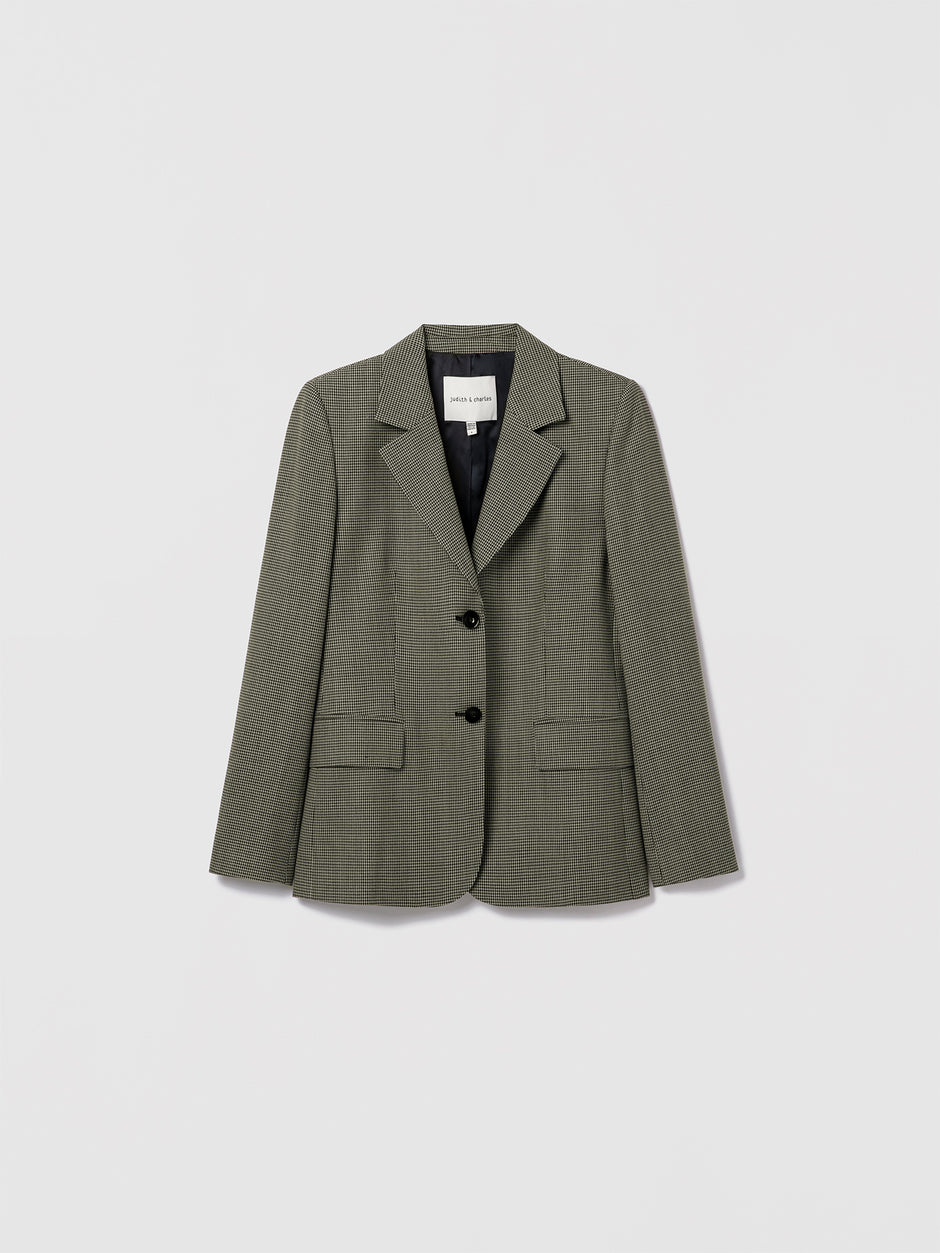 Veste à simple boutonnage en mini pied-de-poule, coupe décontractée