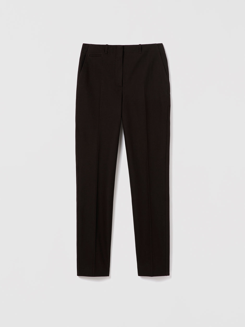 Pantalon ajusté à la cheville, taille mi-haute. Entièrement doublé. Confectionné dans un mélange de viscose et de coton.