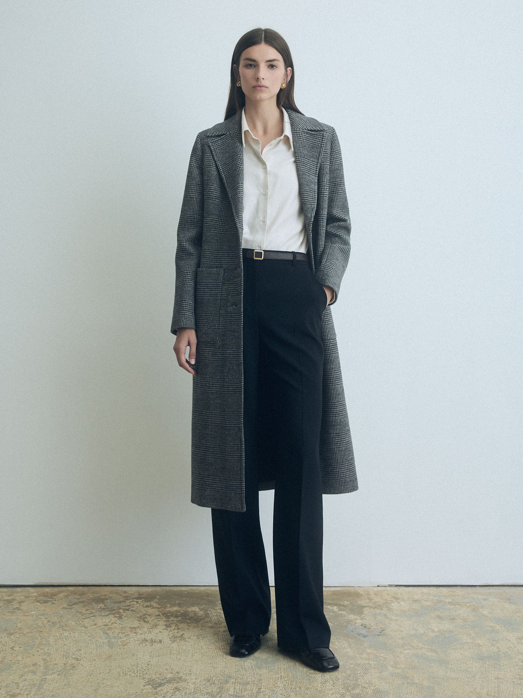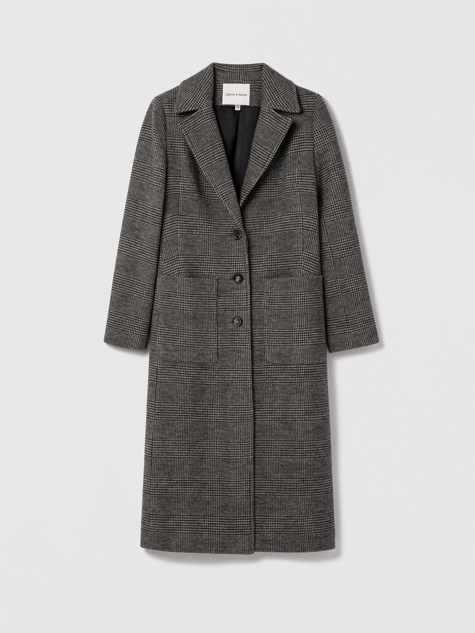 Manteau long Prince-de-Galles en laine Loro Piana, entièrement doublé.