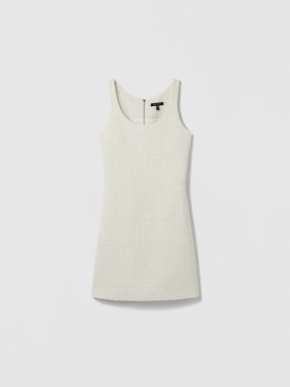 Une robe sans manches structurée, dotée d’une encolure arrondie épurée et de coutures précises. Une fermeture éclair exposée et des poches discrètes.
