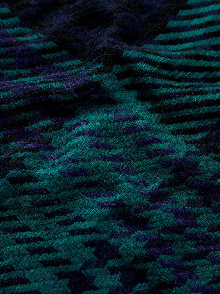 Cette écharpe carrée somptueusement douce est tissée à la main dans un motif pied-de-poule oversize en mélange laine-cachemire. Elle a été conçue dans une palette graphique de couleurs : bleu marine, noir, crème et blanc. Un style saisissant et enveloppant, idéal pour se réchauffer par temps froid. Pour préserver la beauté de vos écharpes, nous recommandons de les conserver à plat et dénouées dans un endroit sec.