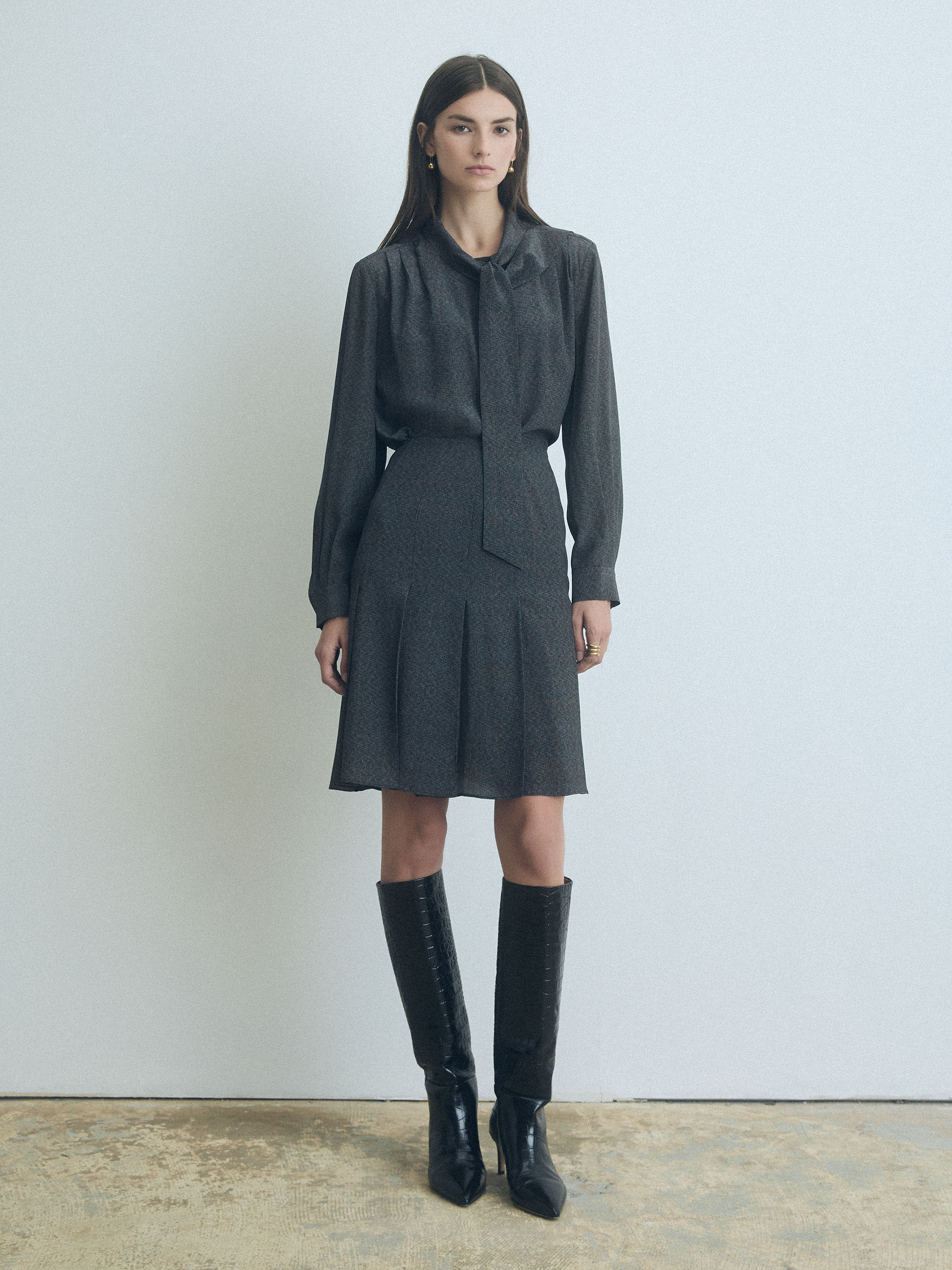 Pleated Prince of Wales silk skirt with invisible zipper.