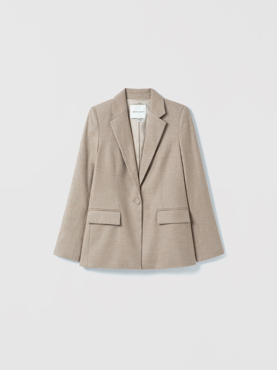 Tailored wool-cashmere blend jacket with notch lapel, flap pockets, and single back vent. Fully lined and made in Canada