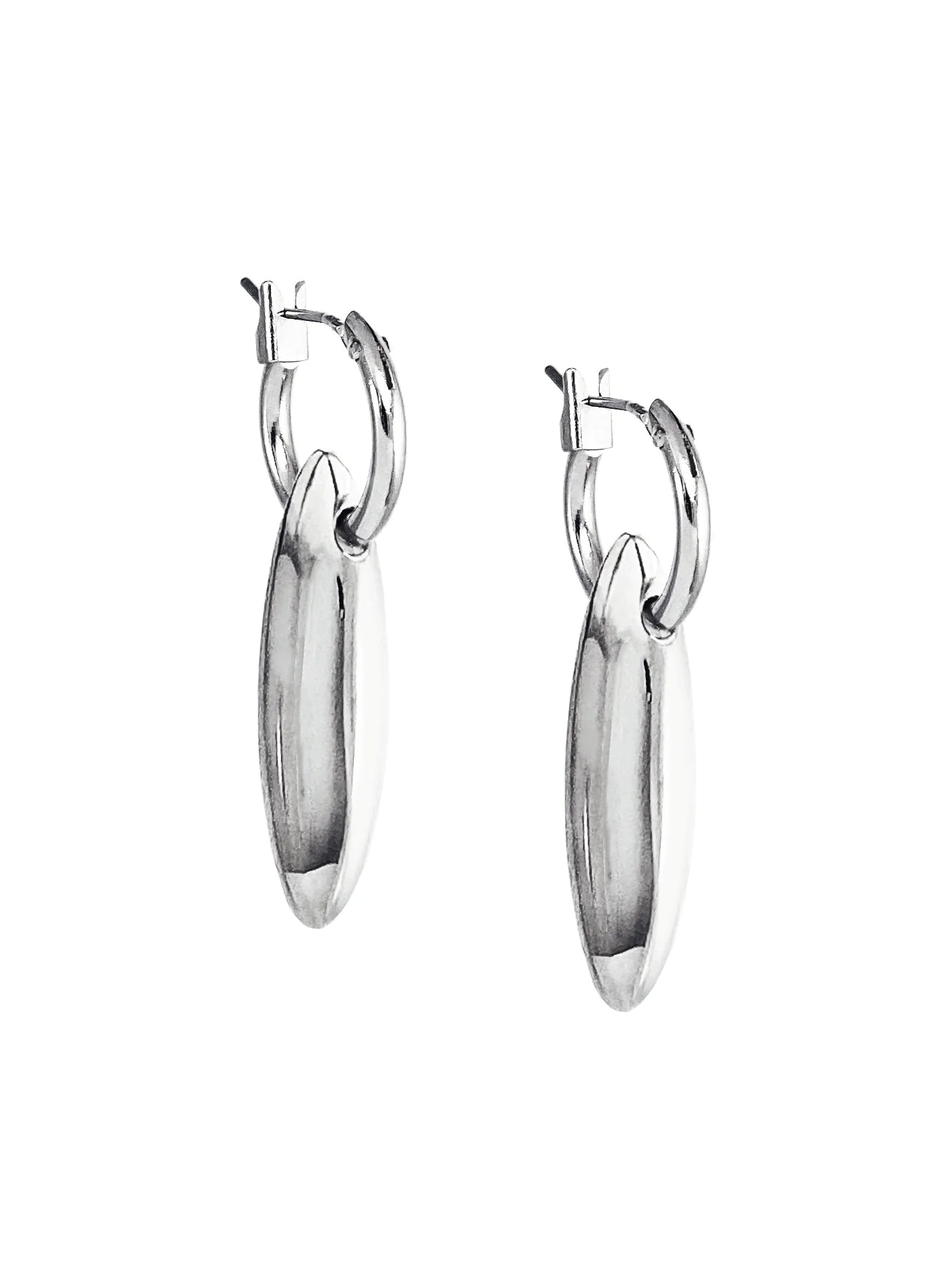 We love versatility. A hand-cast, polished-to-perfection sculptural charm hangs from the perfect mini hoop. Slide the charm off for a sleek solo look. Pictured on model in 1st piercing. Rhodium plating, hypoallergenic posts Hand-cast & polished forms 0.55" hoop diameter, 1.5" drop with charm Style: BK-W2510 Made with love in Toronto, Canada
