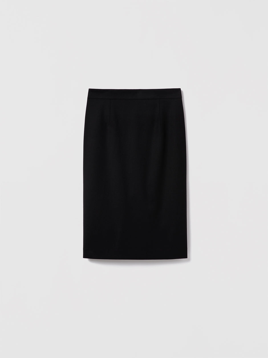 Fitted pencil skirt in stretch suiting with invisible back zip and back vent