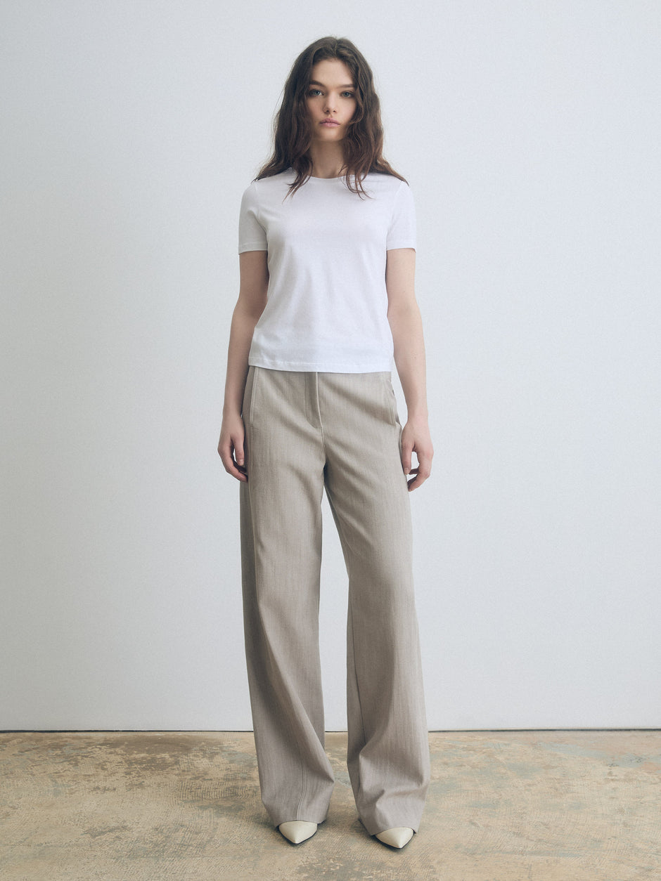 A clean tailored pant in stretch cotton with a smooth, structured line. Designed with functional pockets and a refined waistband.