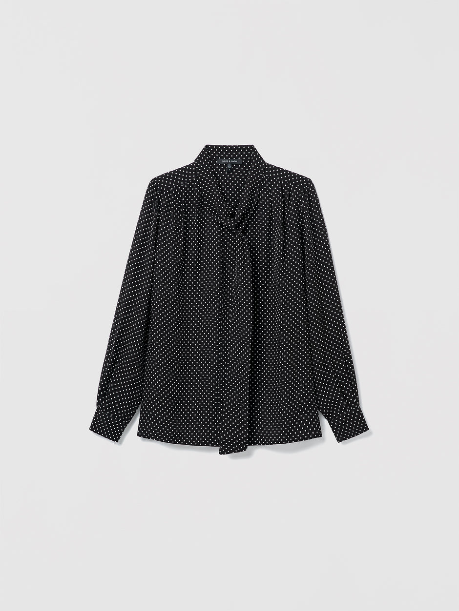Long-sleeve pleated silk blouse with necktie and button closure. Straight fit, unlined.